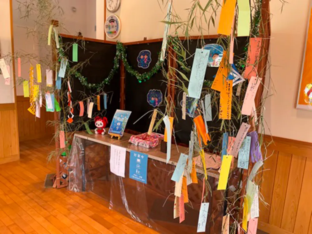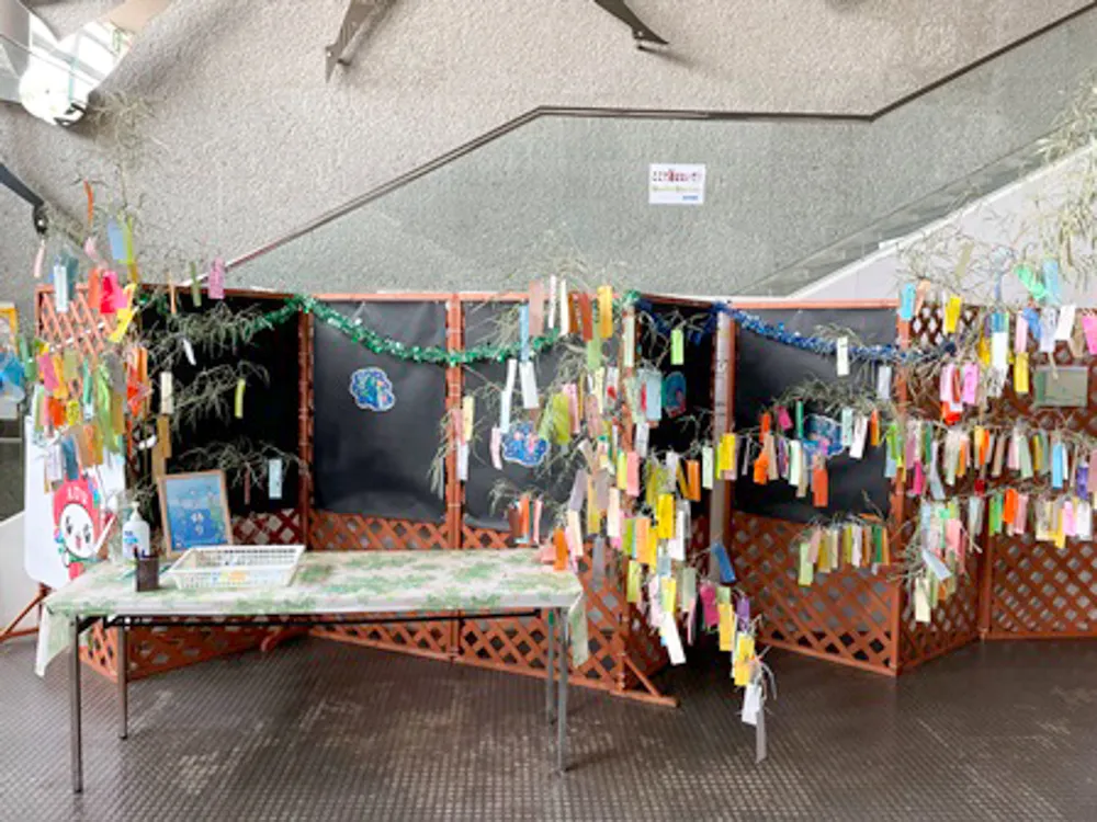 海老名運動公園のロビー 北部公園・中野公園の3公園に七夕の装飾を設置しました。