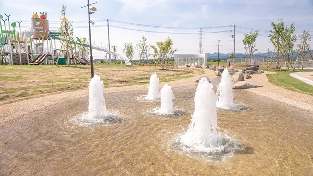 施設には、深谷の野菜をモチーフにした大型遊具(ベジタブルマーケットランド)、滝が流れるような仕掛けやプチ噴水がある「じゃぶじゃぶ池」が子どもたちに大人気です。