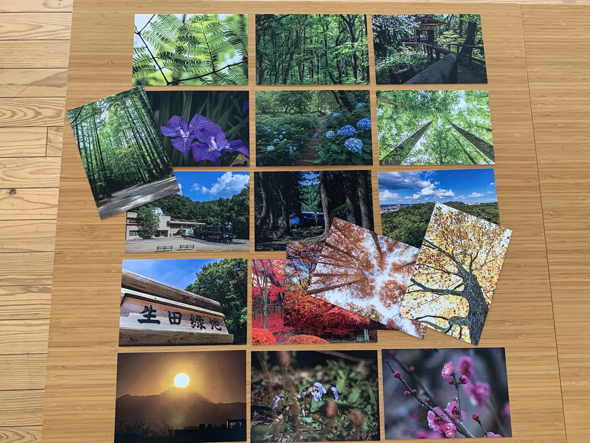 生田緑地の四季折々の植物や風景の写真を用いたポストカードの販売を7月からスタートしました。価格は1枚140円(税込)で、当初は18種類でしたがこの10月からさらに6種類の新商品が加わりました。