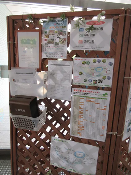海老名運動公園では、花とみどりの相談コーナーを、ロビー装飾(お絵かきコーナー)の側に通常掲示していますが、総合体育館がワクチン接種会場となるため、5月月初より場所を移動しました。月に2~3件の質問があり、それぞれに回答しております。