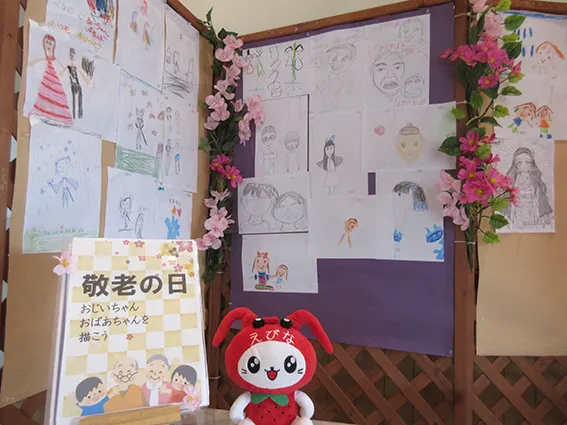 今年の敬老の日は9月21日でした。海老運動公園では『敬老の日』に因み、『おじいちゃん・おばあちゃん』の似顔絵を描いてもらい、それらを体育館正面玄関の中央に掲示致しました(9月1日~9月30日)。ご利用者のお子様(未就園児)を中心に大勢の方が自慢の『おじいちゃん・おばあちゃん』に感謝の気持ちを込めて描いてくれました。