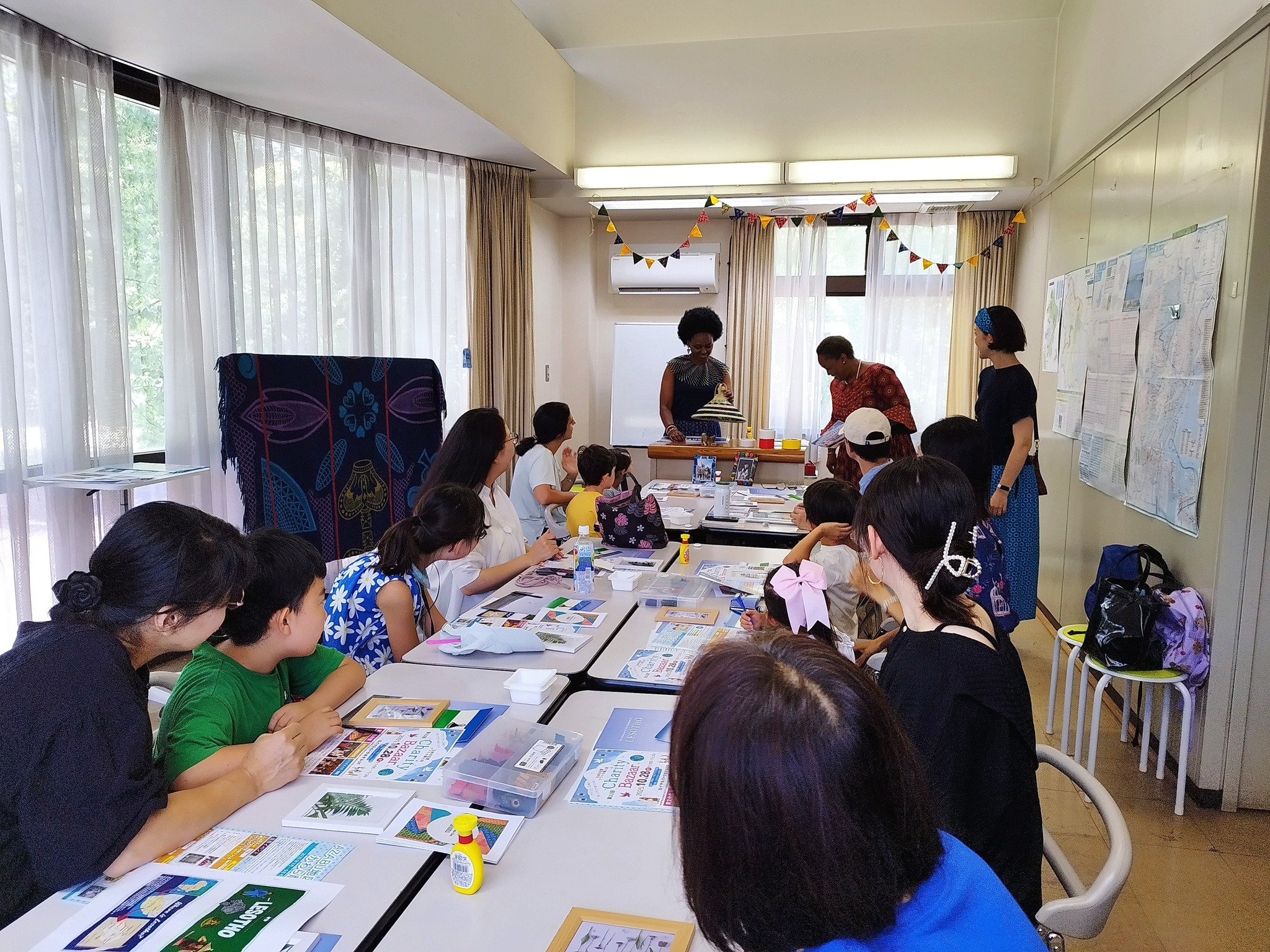麻布地区の地域連携事業として、港区にあるレソト王国大使館の後援でワークショップを開催しました。レソト王国出身のルーシーさんが講師をつとめ、南アフリカのレソト特有の伝統模様をあしらった布でつくるフォトフーム作りやルーシーさんの故郷の景色、食べ物など、文化の紹介も行いました。