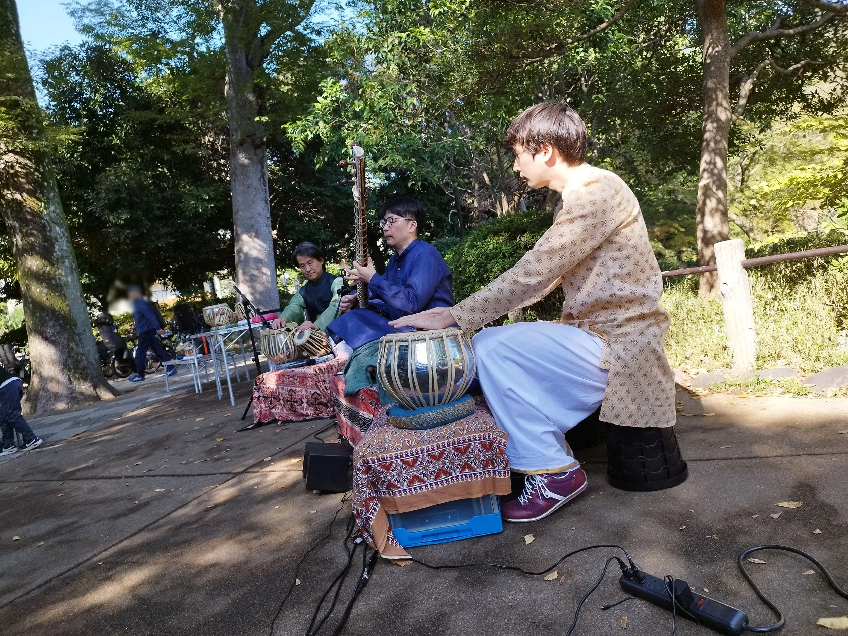 麻布の公園らしく大使館や伝統楽器のアーティストにご協力いただき、春と秋にランチタイムコンサートを開催しています。11月3日はインドの打楽器タブラと弦楽器シタールの競演でした。また、暖かい春に予定していおりますので、お散歩の途中に気軽に寄っていただけたら嬉しいです。