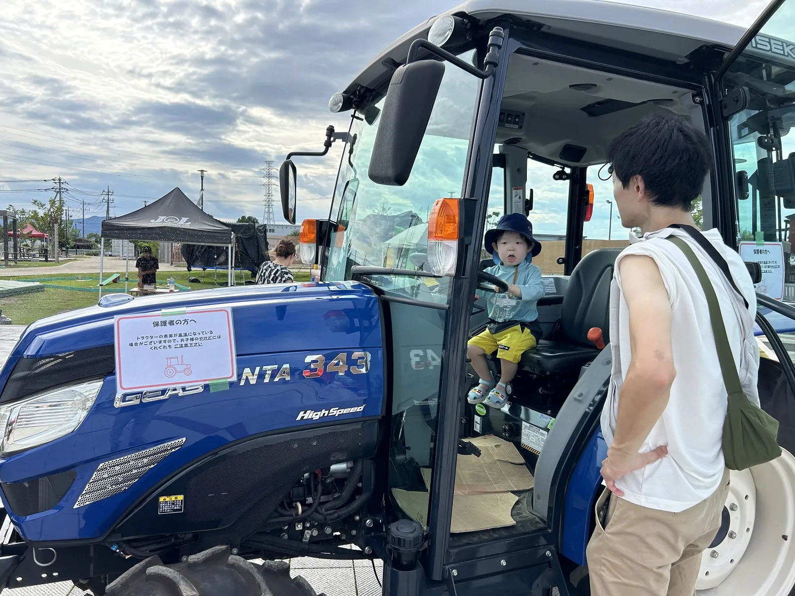 警察署、消防署、農機具会社様にご協力をいただき「はたらくクルマが大集合」しました。お子様用制服を着て記念撮影・乗車体験で、みなさん目を輝かせていました!
