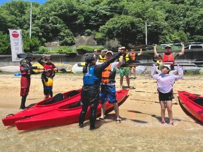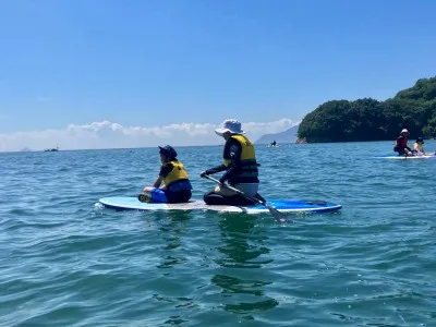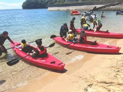 sup/カヌー/ビックマーブルの体験会を行いました。パドルを持つのも、ライフジャケットの着用も、初めての方が多かったので、最初に浮遊体験でライフジャケットの必要性や、水辺での救助待機方法(イカ泳ぎ)を説明し、実際に体験いただきました。その後、漕ぎ方の説明を行い、体験という流れでしたが、当日は炎天下という事もあり水遊びを交えながらすすめました。 反応はとても良く子どもたちからも、「また体験したい‼楽しかった」との声をいただきました。親御さんからは次回の問い合わせを多数いただき、大好評でした。