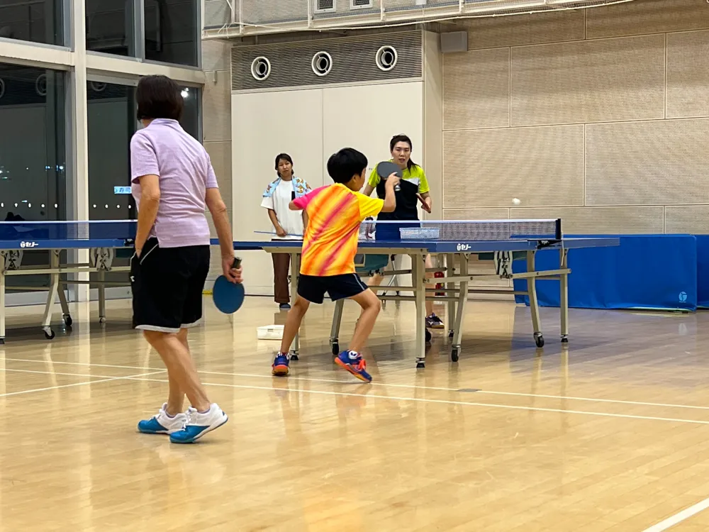施設主催のイベントとして「馮先生の卓球教室」を開催して1年になりました。丁度、中学1年生になり部活動で卓球を始めたお子さんが初回から毎月参加してくれるようになり、今回そのお子さんが、男子部員30名の卓球部内の試合で優勝することが出来たとの喜びの声を頂きました。「次の試合にも出られるから、頑張って!」(先生)「1年頑張って続けられて良かったです。」(本人)「卓球教室を開催して、続けて下さってありがとうございました。」(ご家族の方)「私も先輩を見習って参加します。」(後輩卓球部)「前にもやっていたことがあったのでまた卓球をやってみたくて参加しました。」など、様々な年齢層の方が混じっての練習に益々熱がこもって来ました。