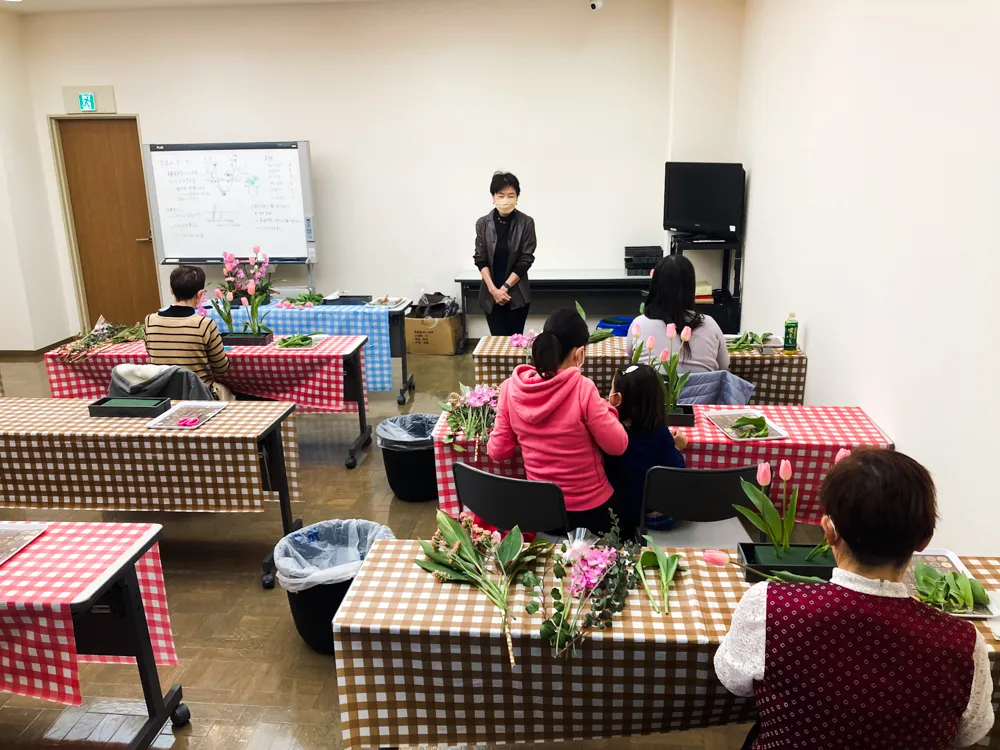 ・コロナで約2年行っていませんでしたが再開して今回で7回目となりました。現在も人数は絞っており通常の半数の8名を定員として開催しています。リピーターの方の増えてきていますし、初めてお花をさわる方でもわかりやすく、楽しく、簡単に制作でき、笑顔でお帰りいただけるように毎回工夫をしています。ぜひまたご利用いただければ幸いです。
