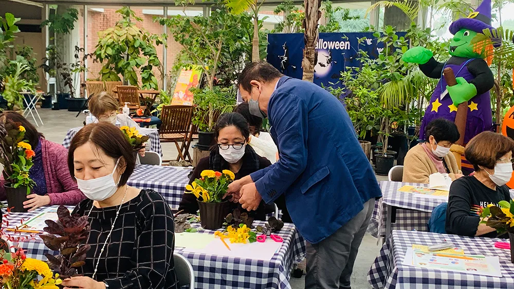 中学生以上を対象に、大人だけの落ち着いた雰囲気でアレンジメントを作りました。 金曜と土曜の二日間、平日を入れての開催や、大人向けの高度なテクニック指導が大変喜ばれ、 日比谷花壇ならではのイベントとなりました。