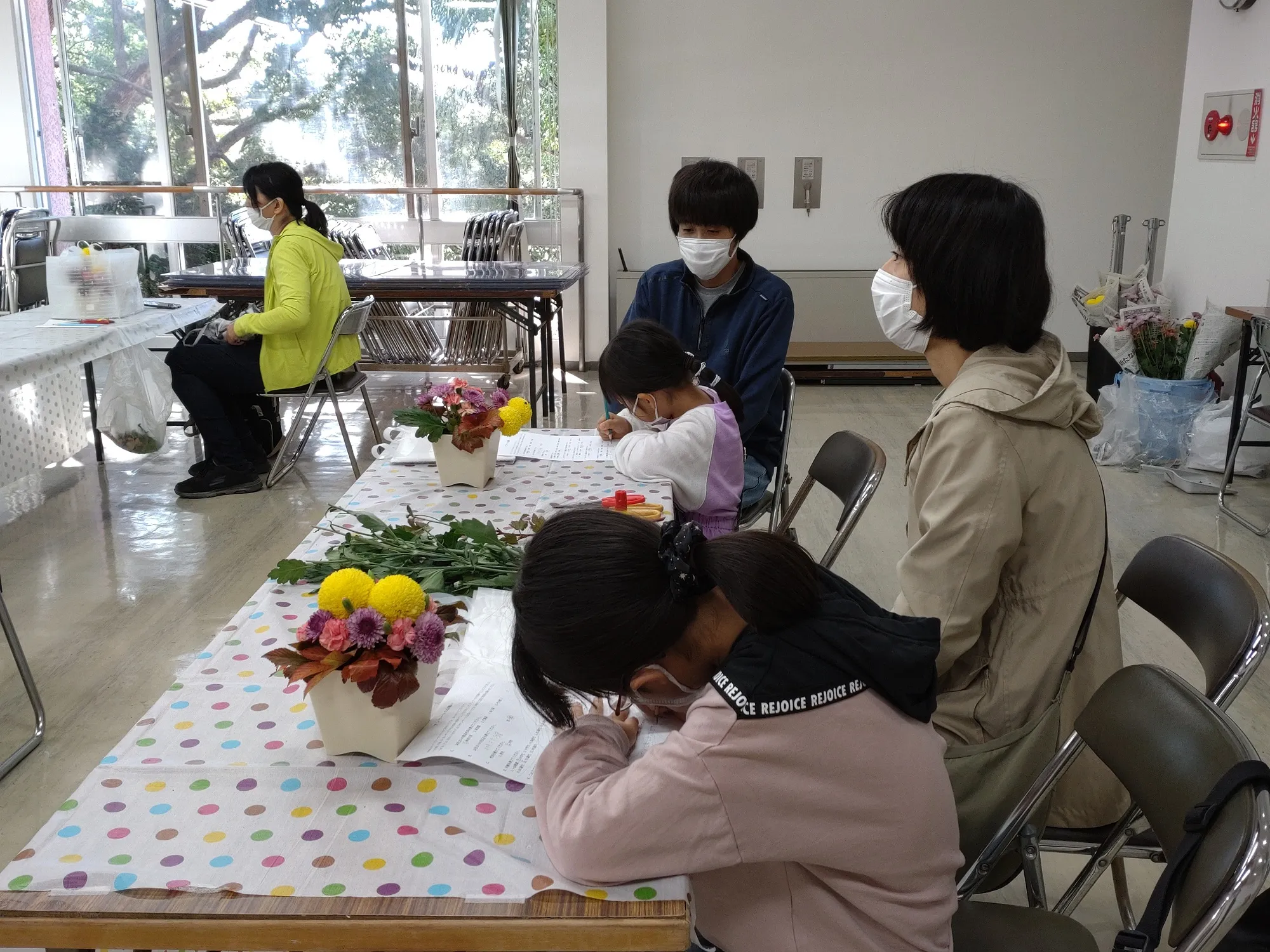 菊花大会開催中に、菊を使ったアレンジメント教室を開催しました。緊急事態宣言が解除され、多くのお申込みをいただき、幅広い年齢層のお客様にご参加いただきました。手指の消毒、マスク着用など制約はありますが、今後も皆さんに楽しんでいただけるイベントを開催していきます。